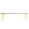 MATERIAL: 27mm Birch plywood top protected with water resistant varnish. Hairpin legs made from 10mm solid steel rod, welded on a 4mm thick “L” bracket. Powder coated in White, Black, Dark Grey, Yellow or Red. Can also be QD Enameled in a specific colour of your choice, please contact us directly for more information.
